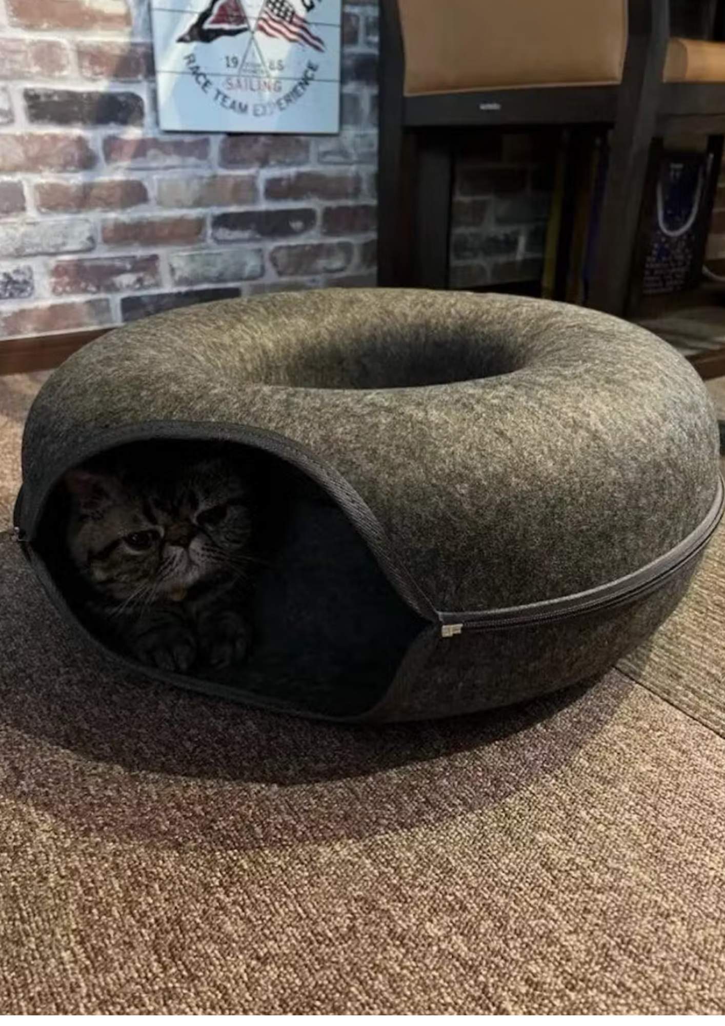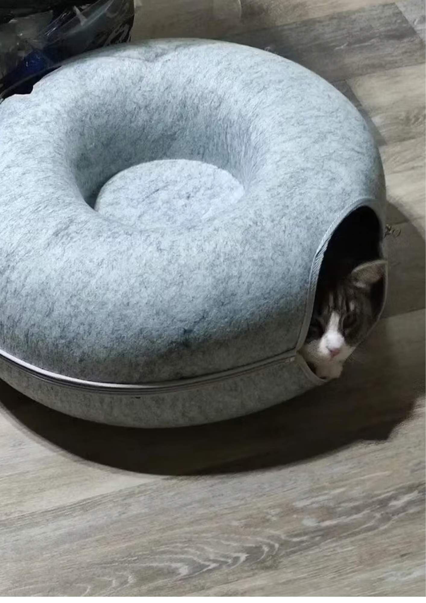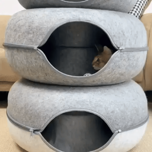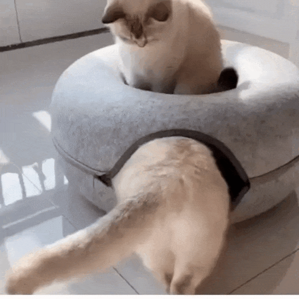 Le lit & grotte Donut pour chat combine douceur et flexibilité dans un seul produit ingénieux :