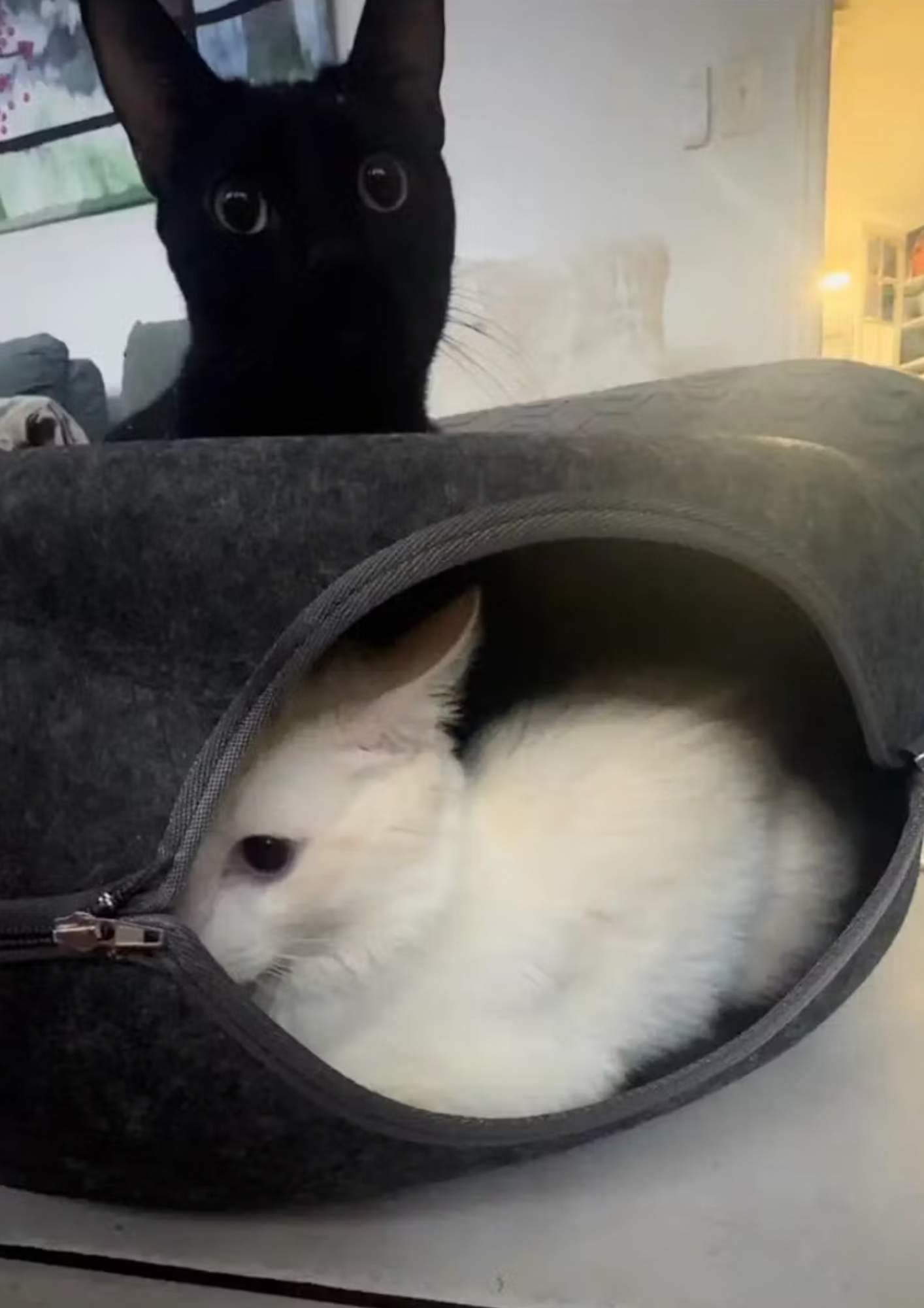 🐾Deux espaces en un– Transforme-le en lit douillet ou en cocon fermé selon les envies de ton chat. Repos en plein air ou cachette sécurisante, il a toujours le choix.