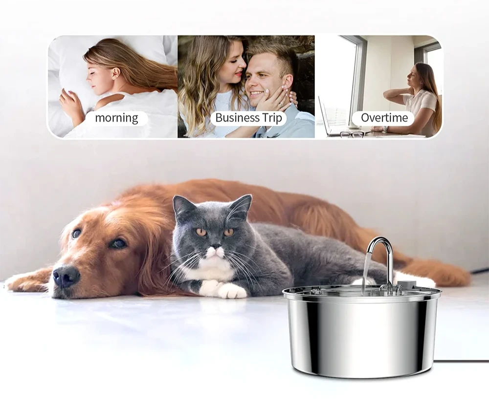 Cette fontaine à eau permet non seulement à ton animal de compagnie d'avoir toujours de l'eau fraîche, mais elle le motive aussi naturellement à boire d'avantage. Grâce à la circulation continue de l'eau, celle-ci reste propre et fraîche, ce qui est parfait pour prévenir la déshydratation. Le fonctionnement silencieux et le design élégant font de cette fontaine un accessoire pratique et élégant dans ta maison.